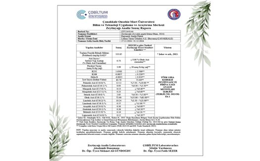 Zeytinyağlarımız hasat edildikleri zeytinliklerin bulunduğu köylere ve hasat zamanlarına göre sınıflandırılarak satışa sunulmuştur. Her bir kategori tek bahçe ürünüdür ve geleneksel yöntemlerle üretilmiştir. Kimyasal hiçbir katkı ya da destek kullanılmamaktadır. Kuzey Ege’ye özgü otsu meyvemsi bir tat ve düşük asit oranına sahiptir.